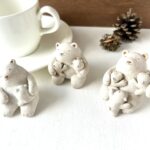 猫さんは紙粘土製、栗は樹脂粘土でできています。